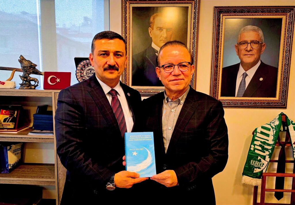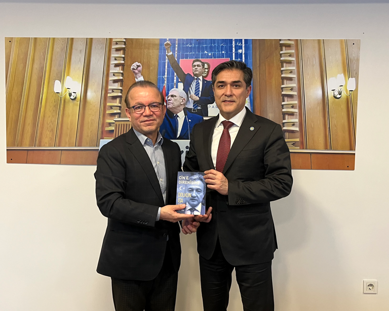 Ziyaretin sonunda Prof. Dr. Erkin EMET çevirisini yaptığı Dünya Uygur Kurultayı Eski Başkanı Dolkun İsa’nın hayatı anlatılan ÇİNE DİRENİŞİM adlı kitabı ile yazdığı KURULUŞUNUN 20 YILINDA DÜNYA UYGUR KURULTAYI VE DOĞU TÜRKİSTAN MÜCADELESİ adlı kitaplarını hediye etti.